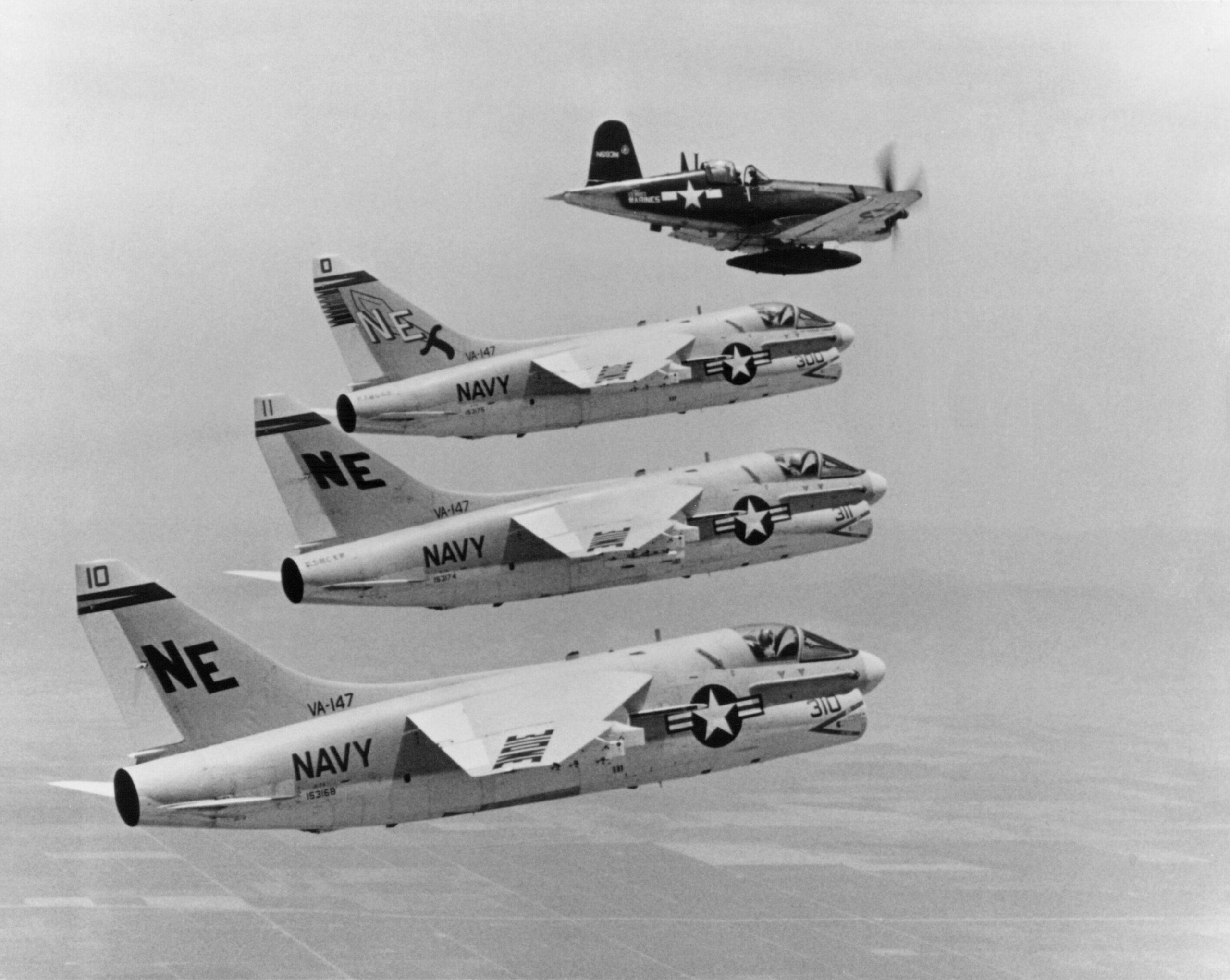 The A-7 was developed during the early 1960s as replacement for the Douglas A-4 Skyhawk. Its design was derived from the Vought F-8 Crusader; in comparison with the F-8, the A-7 is both smaller and restricted to subsonic speeds, its airframe being simpler and cheaper to produce. Following a competitive bid by Vought in response to the United States Navy's (USN) VAL (Heavier-than-air, Attack, Light) requirement, an initial contract for the type was issued on 8 February 1964. Development was rapid, first flying on 26 September 1965 and entering squadron service with the USN on 1 February 1967; by the end of that year, A-7s were being deployed overseas for the Vietnam War.